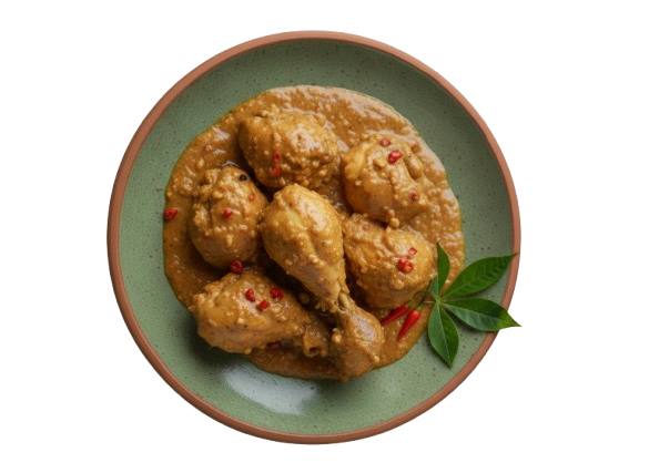 Poulet mijoté dans une sauce à base de pâte d’arachide.