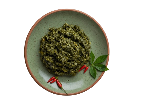 Pâte de manioc pilée puis cuite lentement pour obtenir une texture souple et élastique traditionnel.
