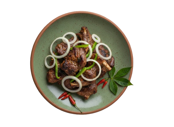 Poisson salé dessalé puis mijoté avec oignons et épices, offrant une saveur intense et délicieusement parfumée.
